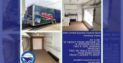 Attention Vendors! Up for sale is a 2001 United Express Custom Built Vending Trailer! If you know someone interested have them give our sales team a call at 412-967-1500 24′ x 96′…